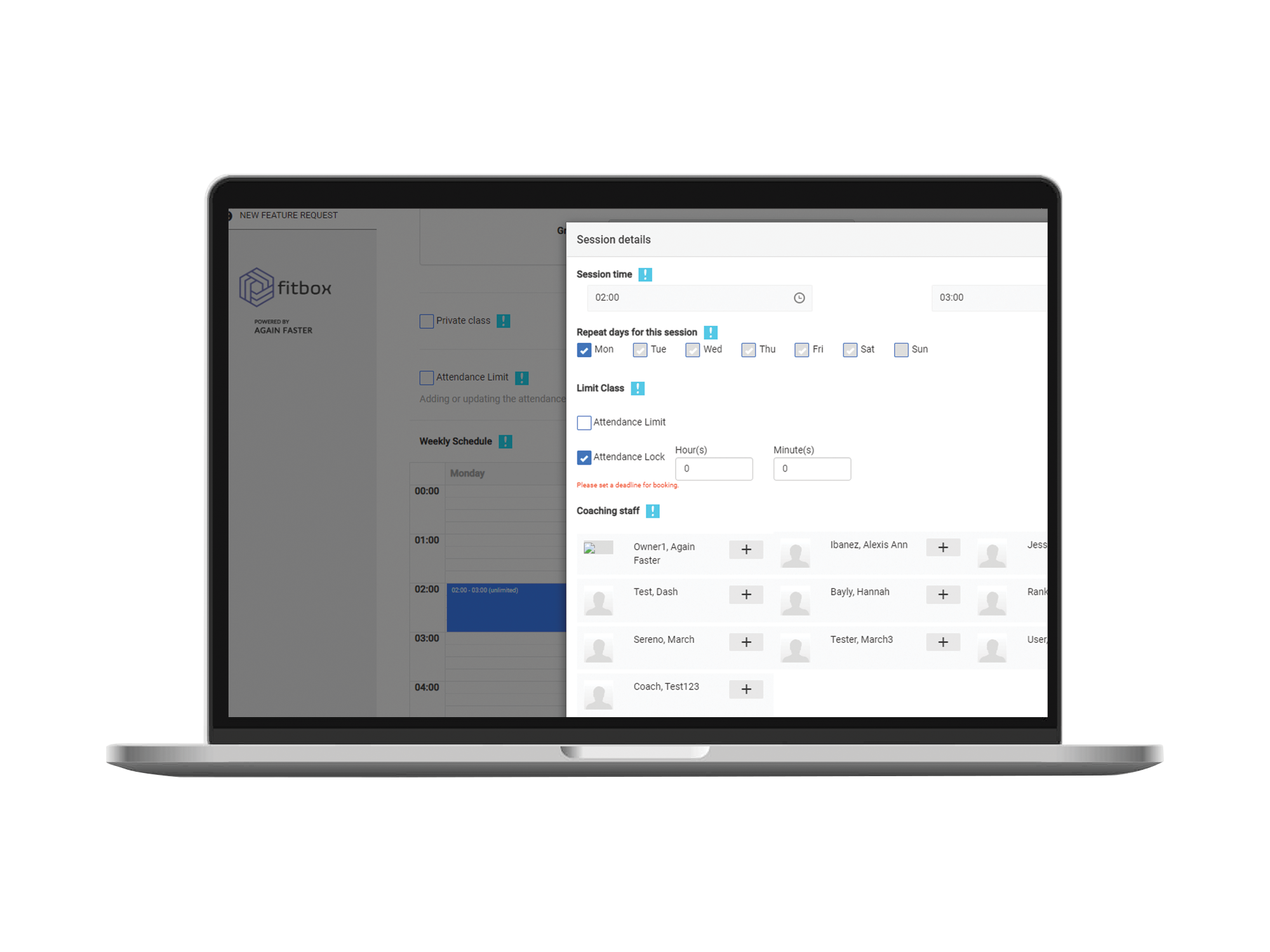 The new session lock can be applied when adding a session on the calendar table upon creating/editing a class: